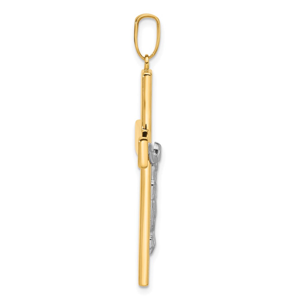 14K Two-tone Polished and Textured Crucifix Pendant