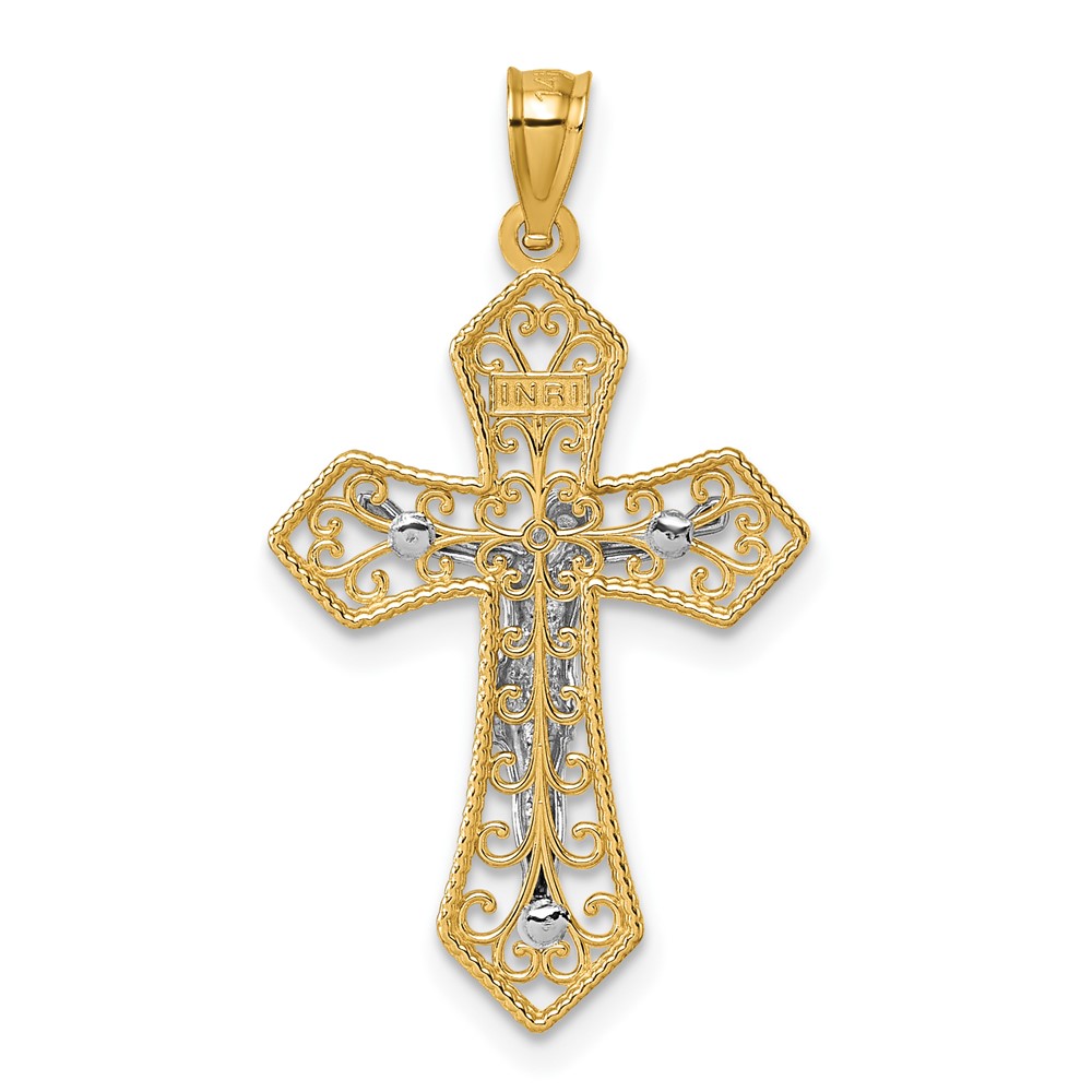 14k Two-tone Polished and Textured Filigree Passion Crucifix Pendant