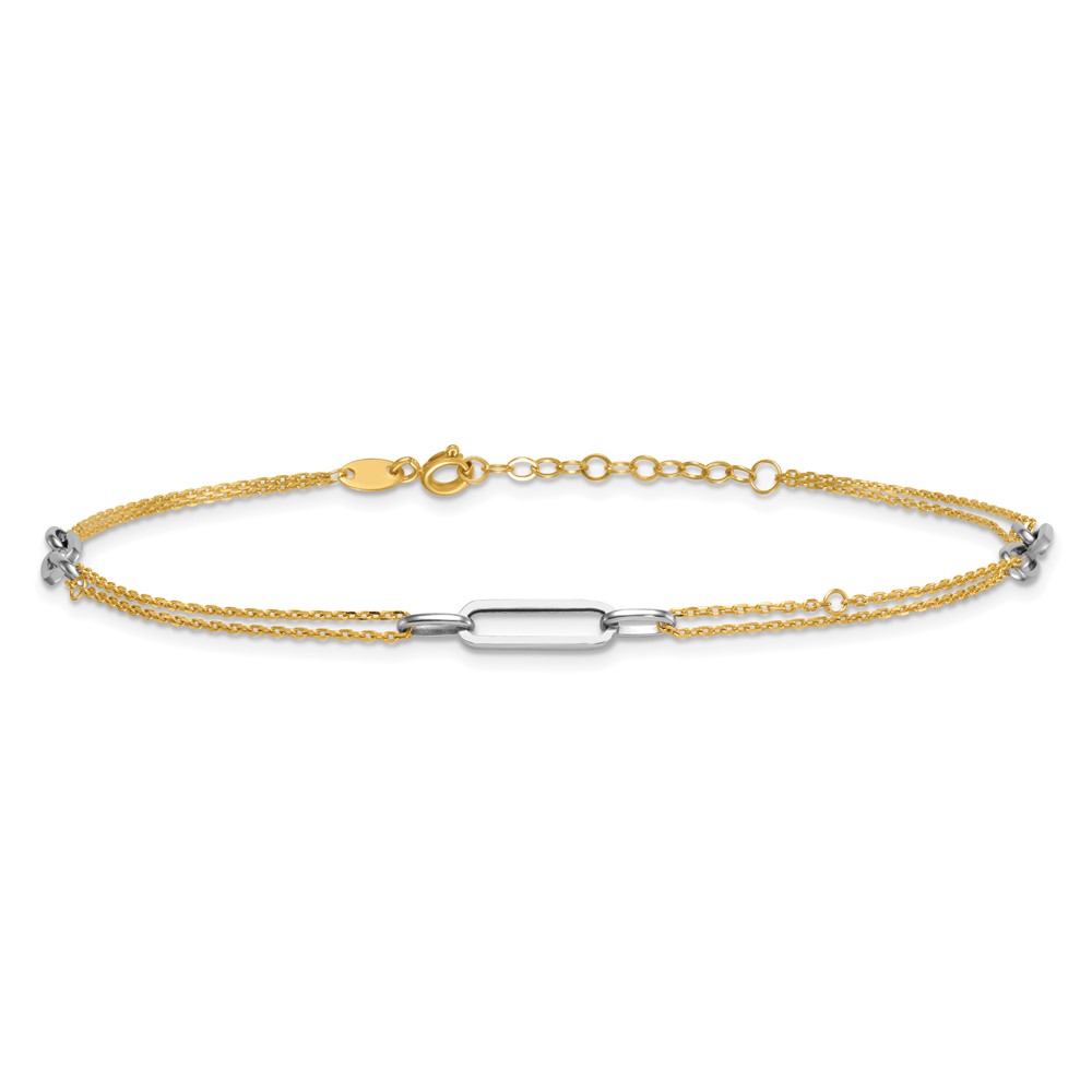14K Two-tone Polished Diamond-cut 3-Station Plus Extender – Total Anklet