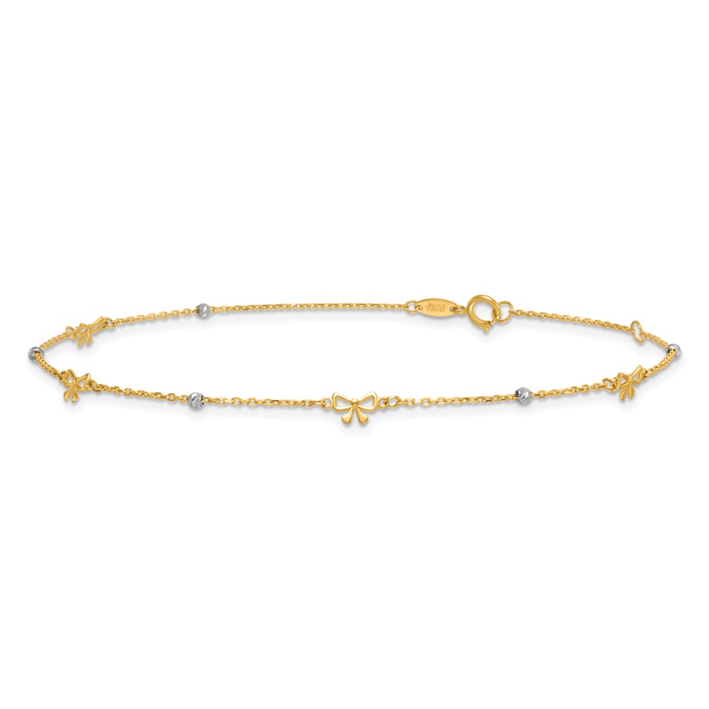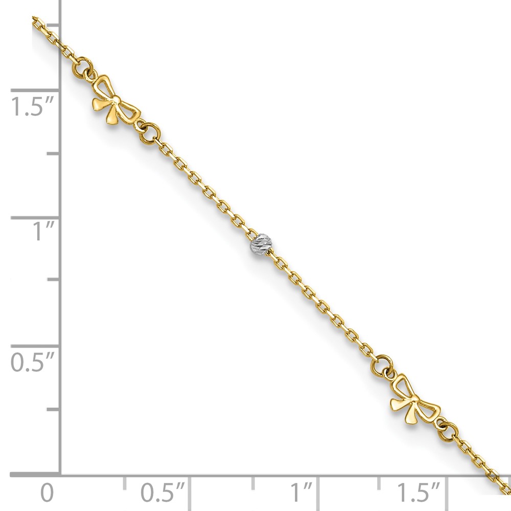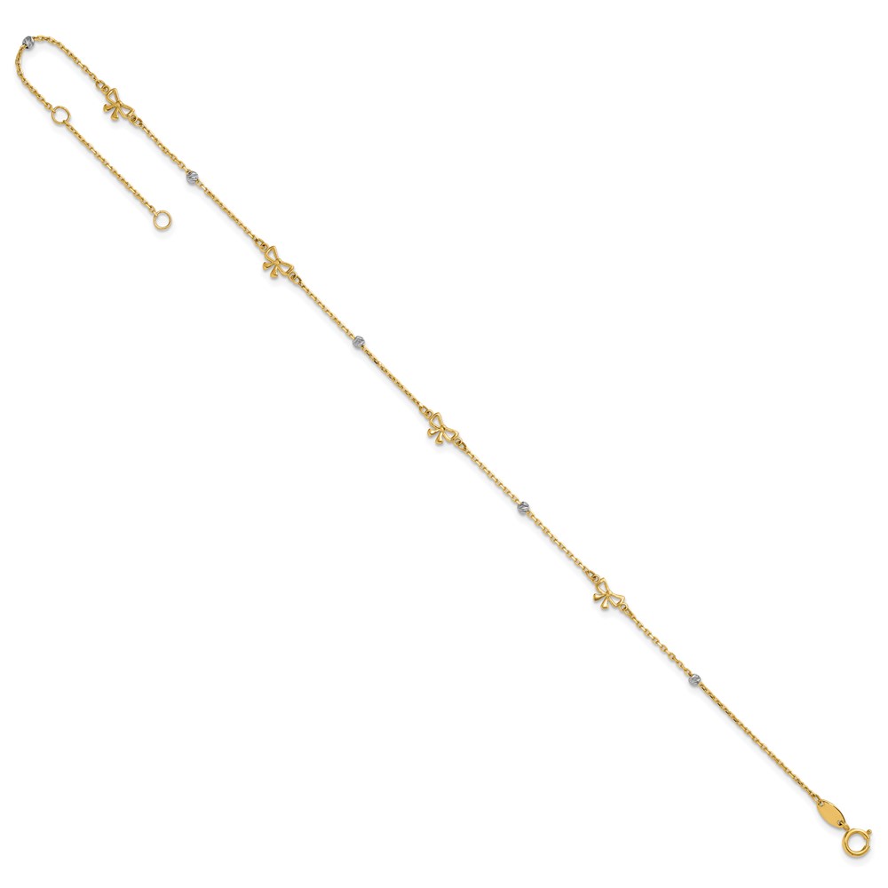 14k Two-tone Polished Diamond-cut Beads and Bows Plus Extender – Total Anklet