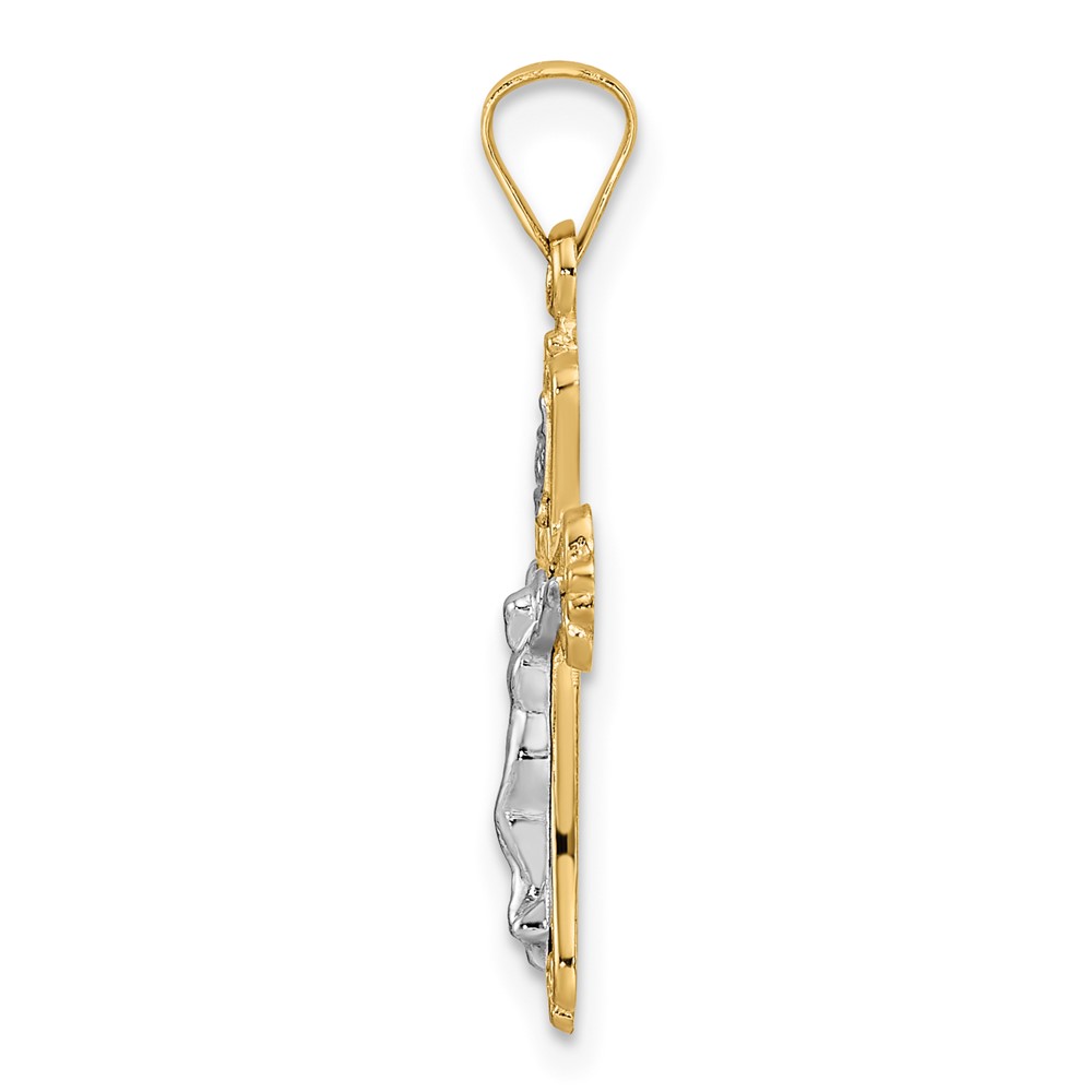 14k Two-tone Polished Solid INRI Crucifix Pendant