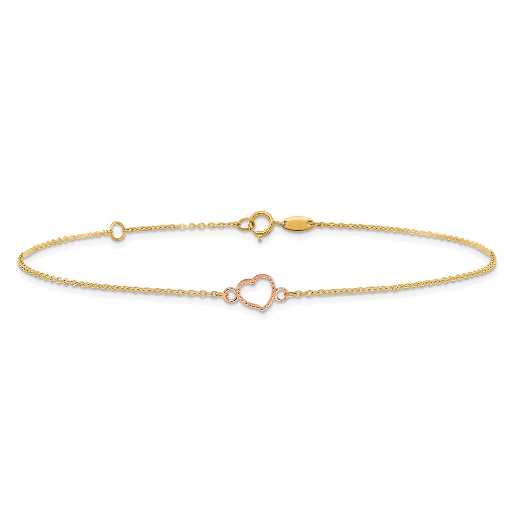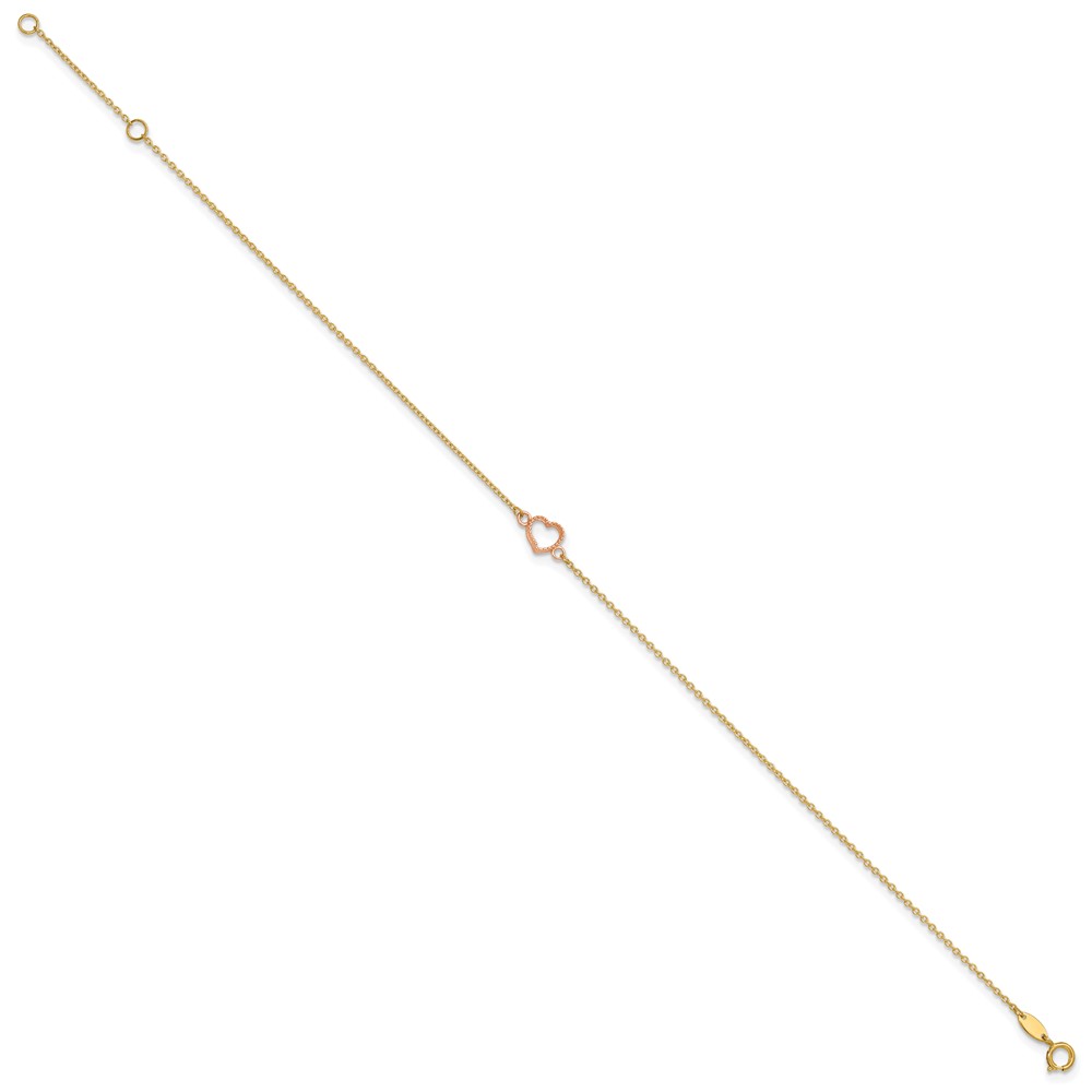 14k Two-tone Textured and Polished Open Heart Plus Extender – Total Anklet