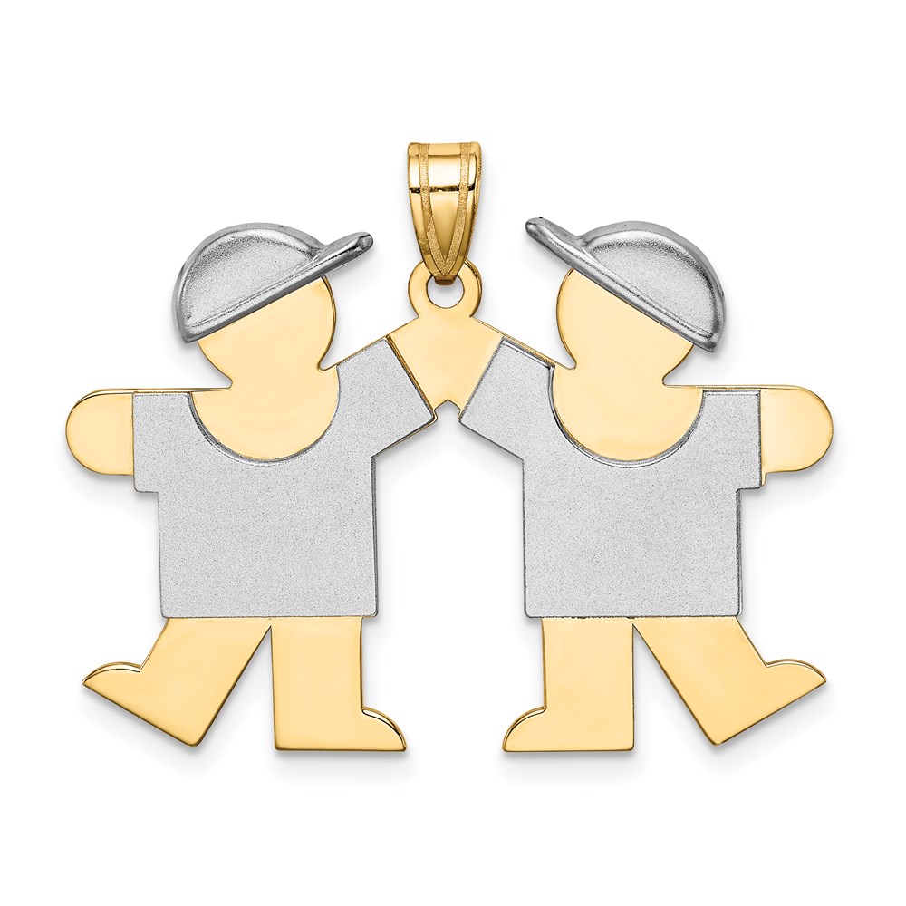 14k Two-tone The Kids Medium Double Boys Engravable Kiss Charm