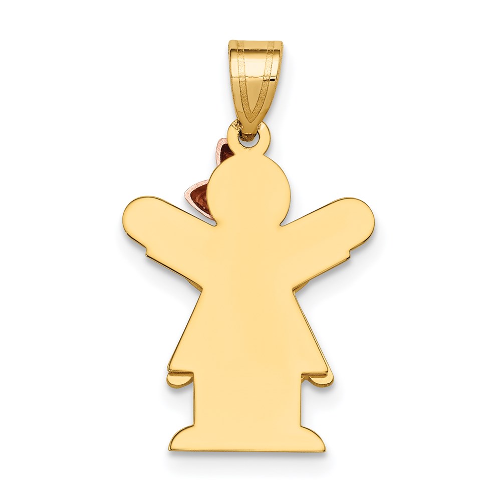 14k Two-tone The Kids Small Girl with Ruffles and Bow on Right Engravable Love Charm
