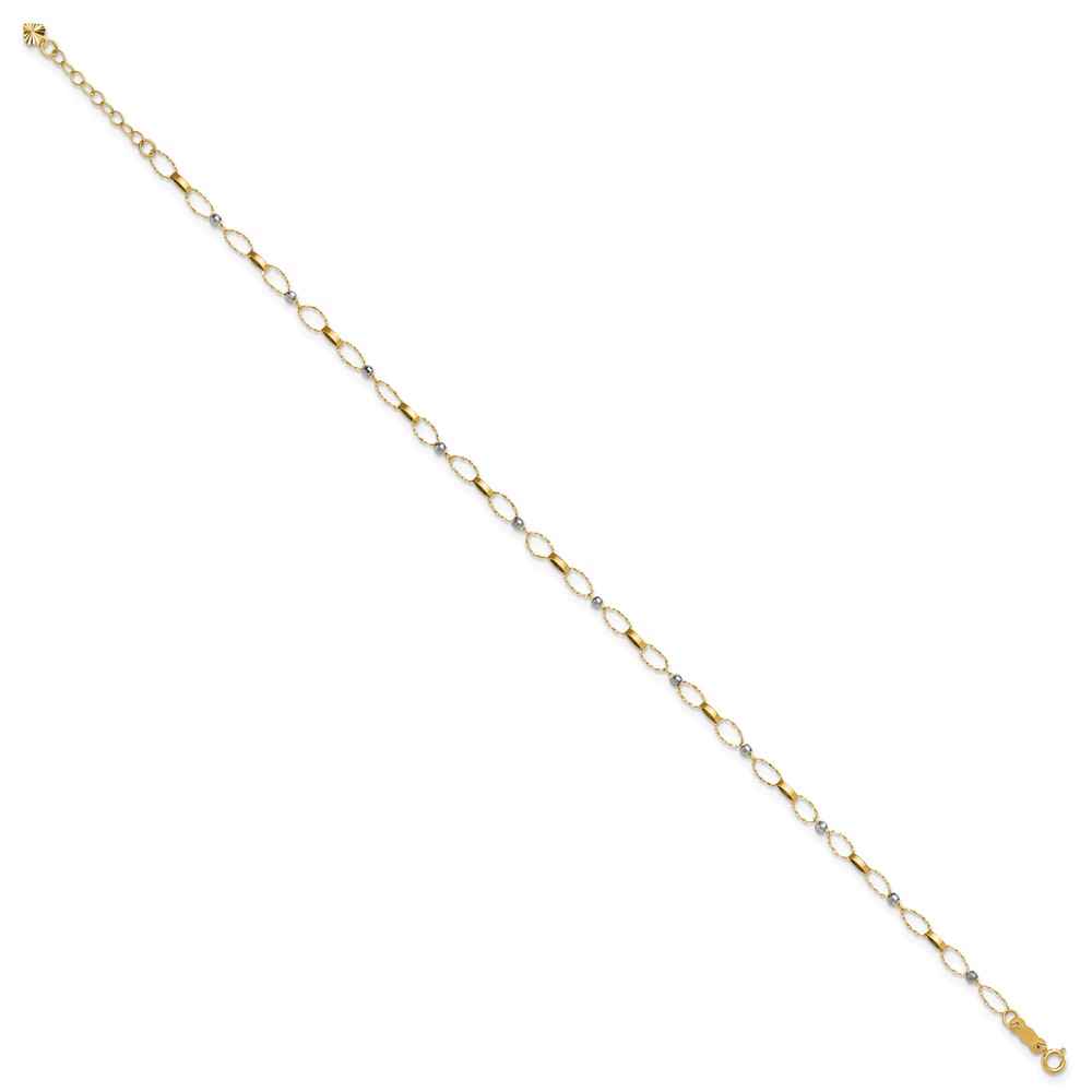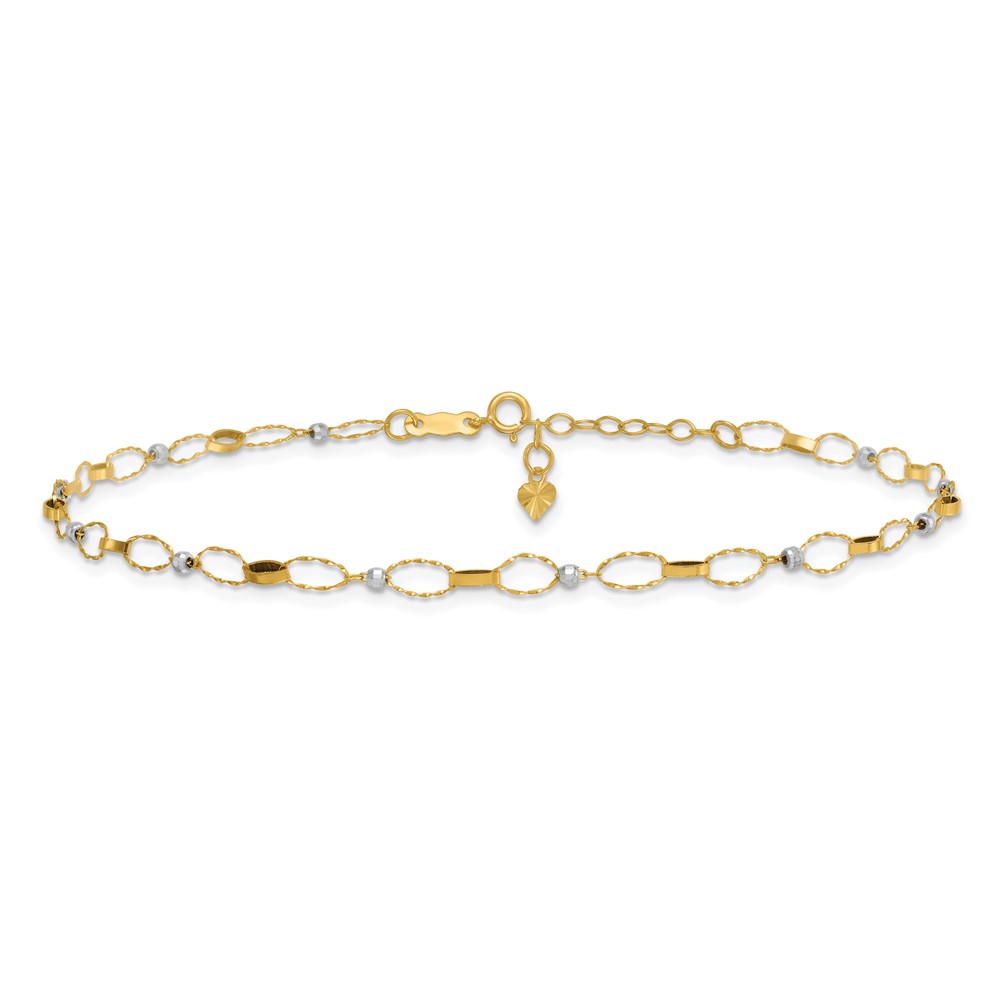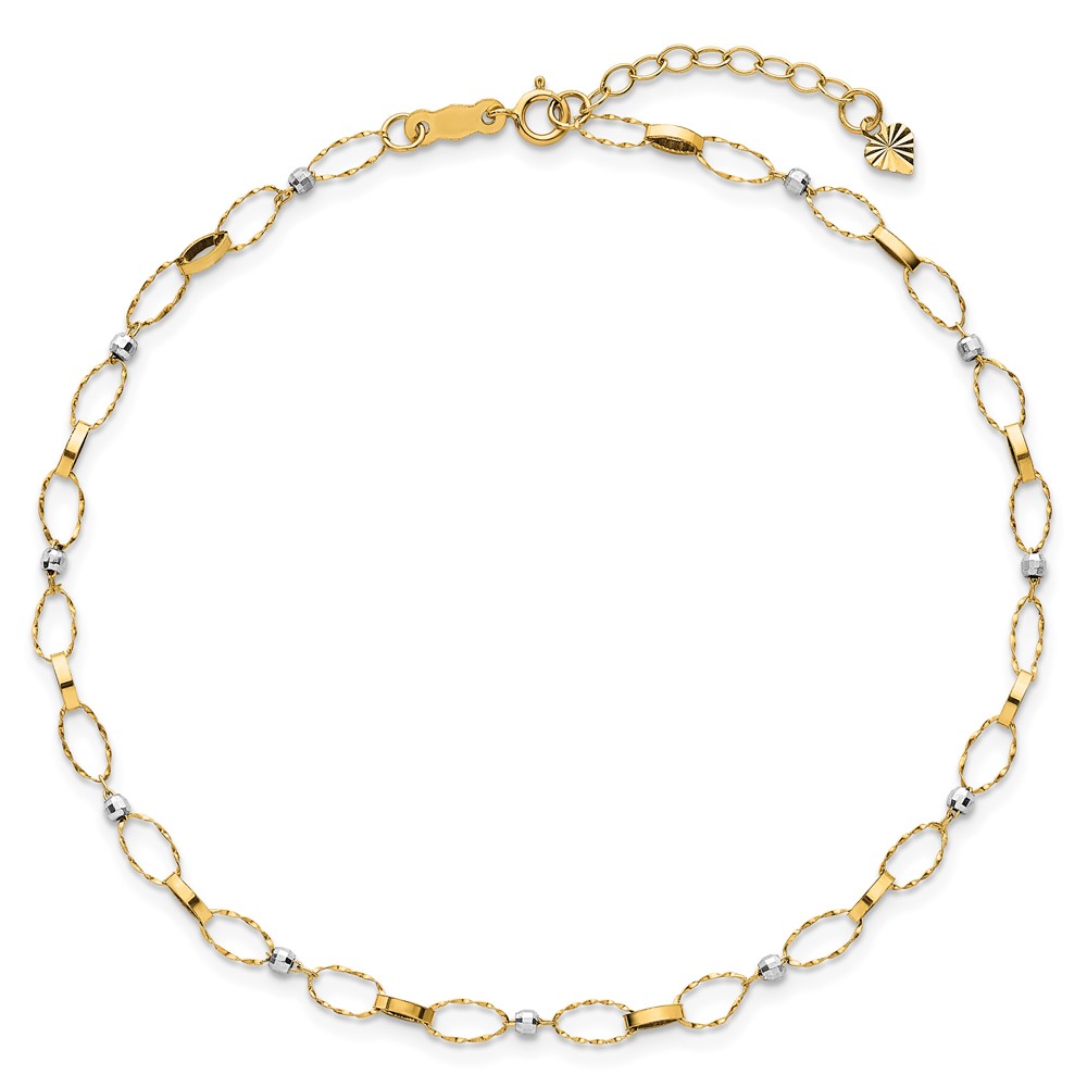 14k Two-tone Twisted Links and Mirror Beads Plus Extender – Total Anklet