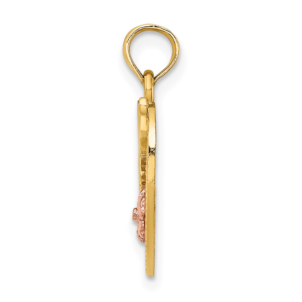 14K Two-tone with White Rhodium #1 MOTHER Heart with Flower Charm