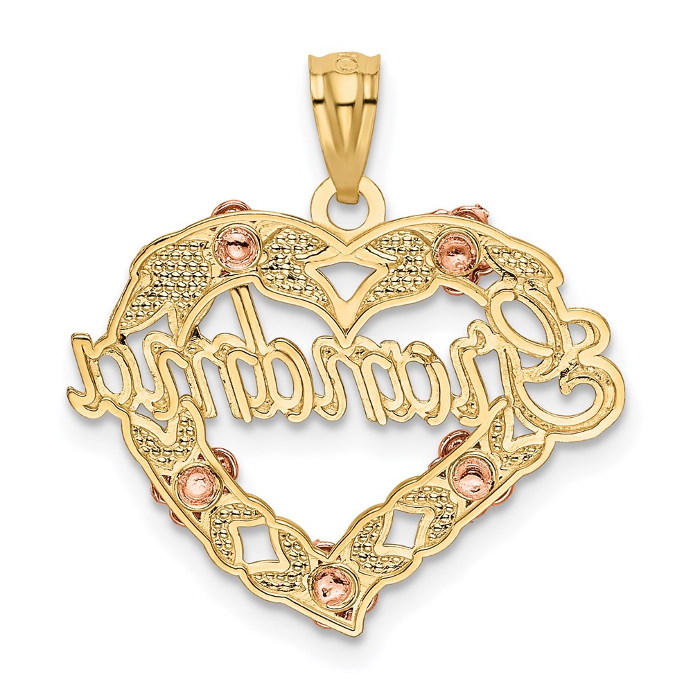 14k Two-tone with White Rhodium GRANDMA Heart with Flowers Pendant