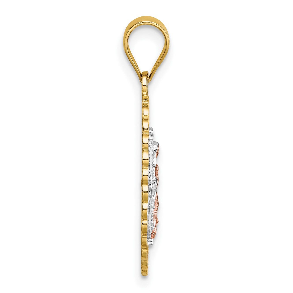 14k Two-tone with White Rhodium Polished Diamond-cut Pierced Design Our Lady of Guadalupe Pendant