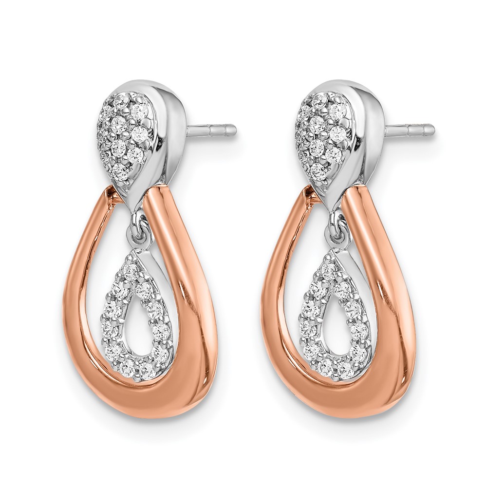 14k White and Rose Gold 1/5 carat Diamond Teardrop Post Dangle Earrings