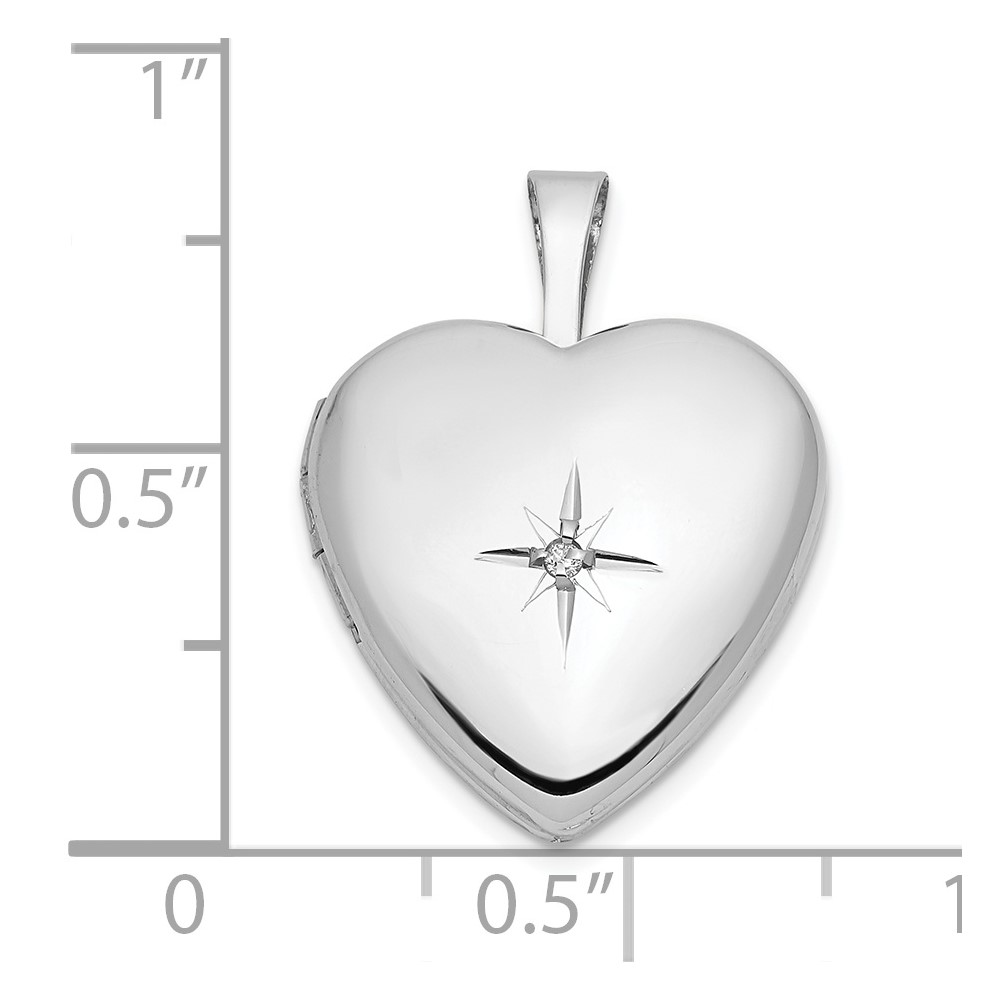 14k White Gold .01 carat Diamond Star 16mm Heart Locket