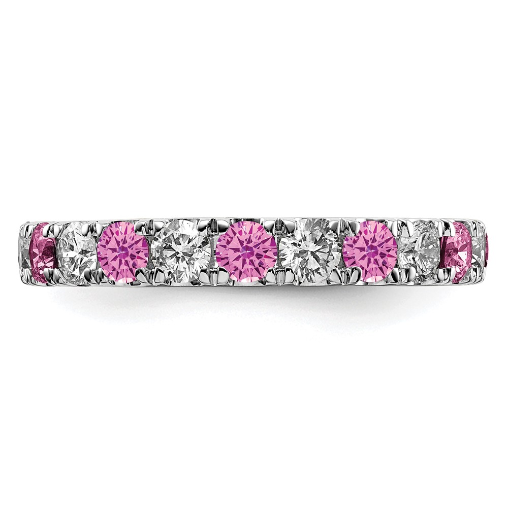 14k White Gold 1 1/5 carat Lab Grown Diamond VS/SI+ G+ and Lab Created Pink Sapphire Complete Eternity Band