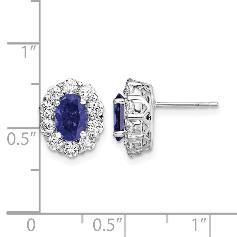 14k White Gold 1 1/5 carat Lab Grown Diamond VS/SI+ G+ and Oval Created Sapphire Halo Post Earrings