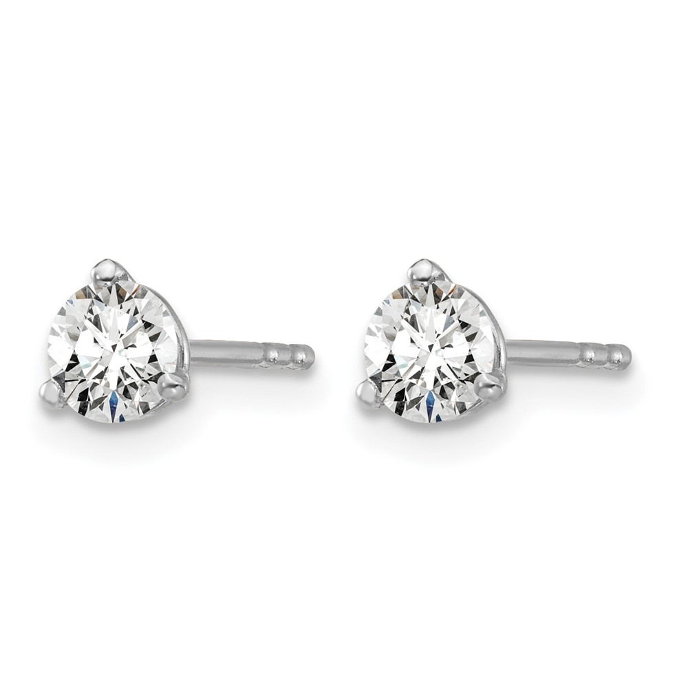 14k White Gold 1/2 carat Certified Lab Grown Diamond VS+ F+ Round Complete Three Prong Stud Earrings