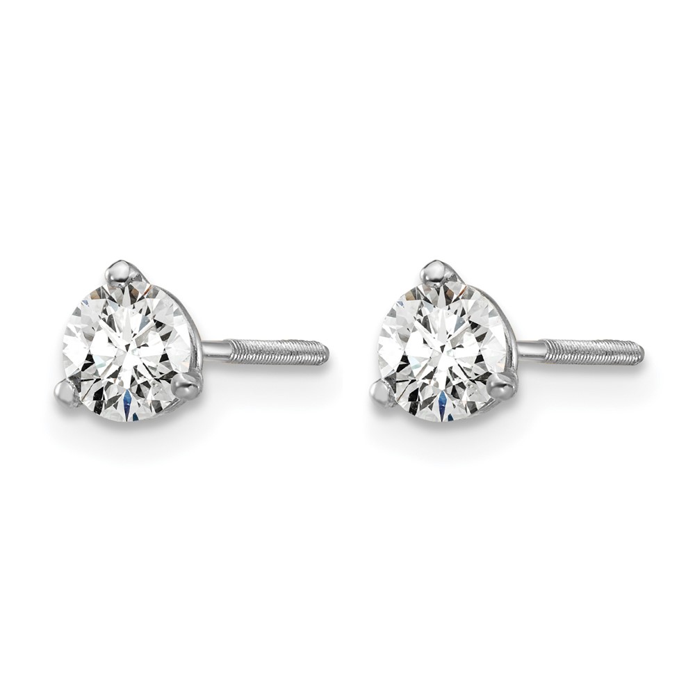 14k White Gold 1/2 carat Lab Grown Diamond VS+ F+ Round Complete Three Prong Screwback Stud Earrings