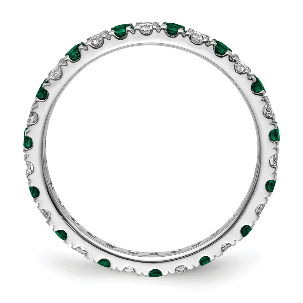 14k White Gold 1/2 carat Lab Grown Diamond VS/SI+ G+ and Lab Created Emerald Size 8 Eternity Band