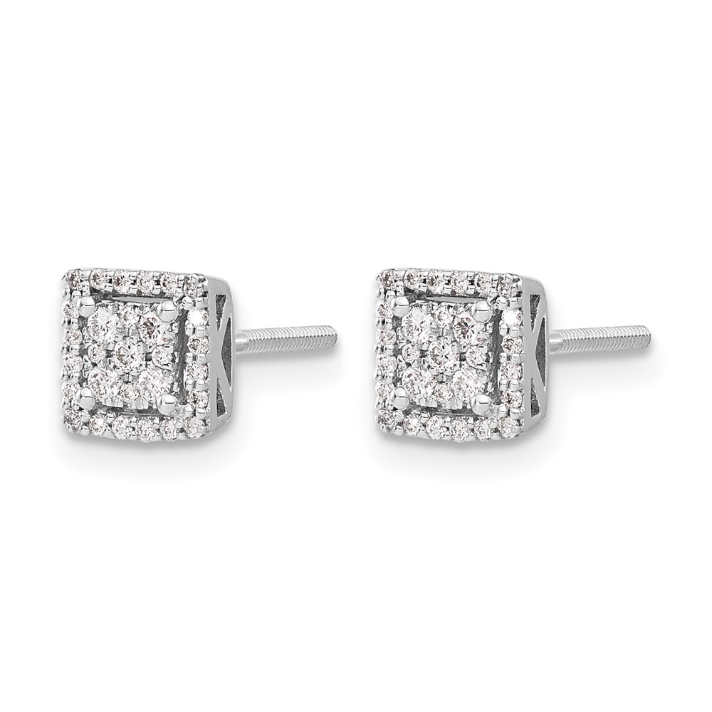 14k White Gold 1/4 carat Diamond Cluster Square Screwback Post Earrings
