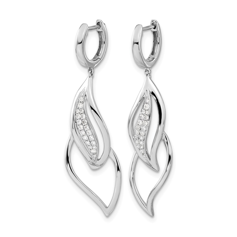 14k White Gold 1/4 carat Diamond Hinged Hoop Leaf Design Dangle Earrings