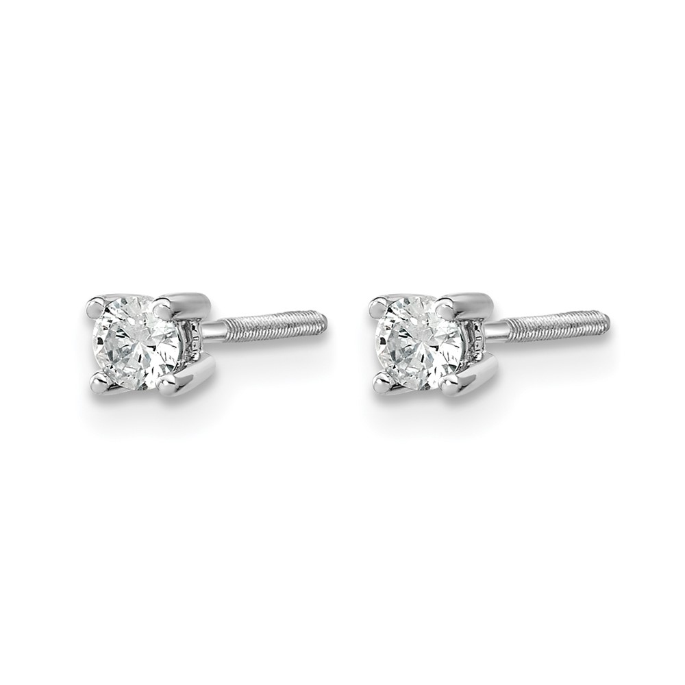 14k White Gold 1/5 carat Certified Lab Grown Diamond VS+ F+ Round Complete Four Prong Screwback Heavyweight Stud Earrings