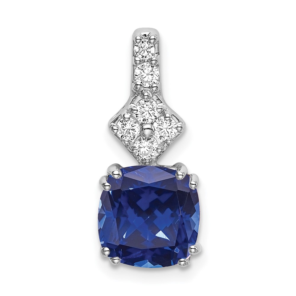 14k White Gold 1/5 carat Lab Grown Diamond VS/SI+ G+ and Lab Created Blue Sapphire Complete Pendant