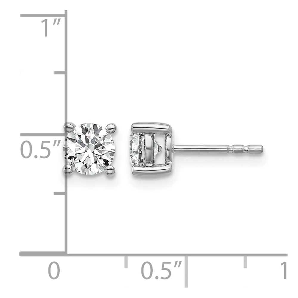 14k White Gold 1 carat Lab Grown Diamond VS+ F+ Round Complete Four Prong Heavyweight Stud Earrings