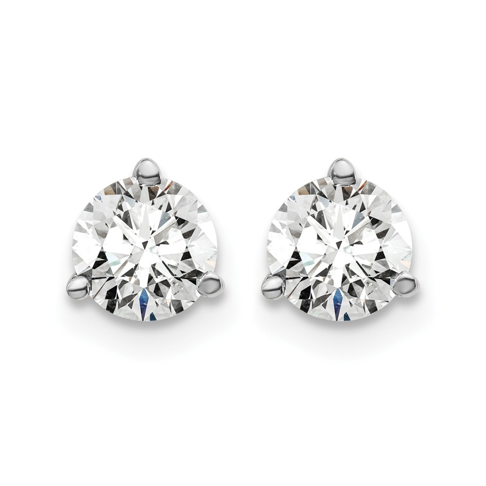 14k White Gold 1 carat Lab Grown Diamond VS/SI+ G+ Round Complete Three Prong Screwback Stud Earrings