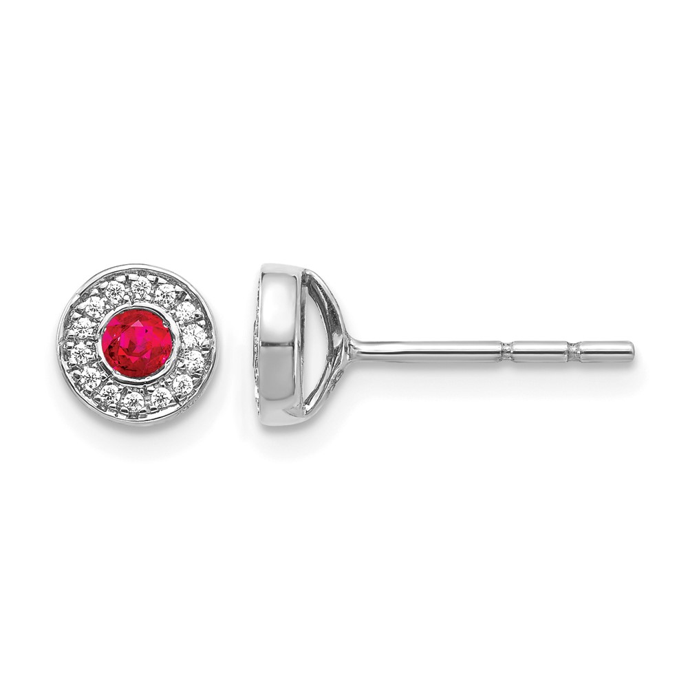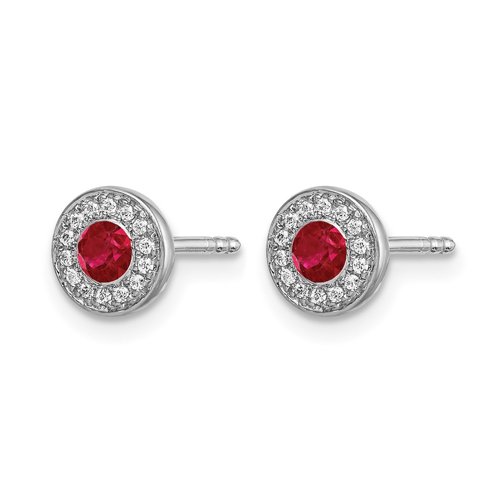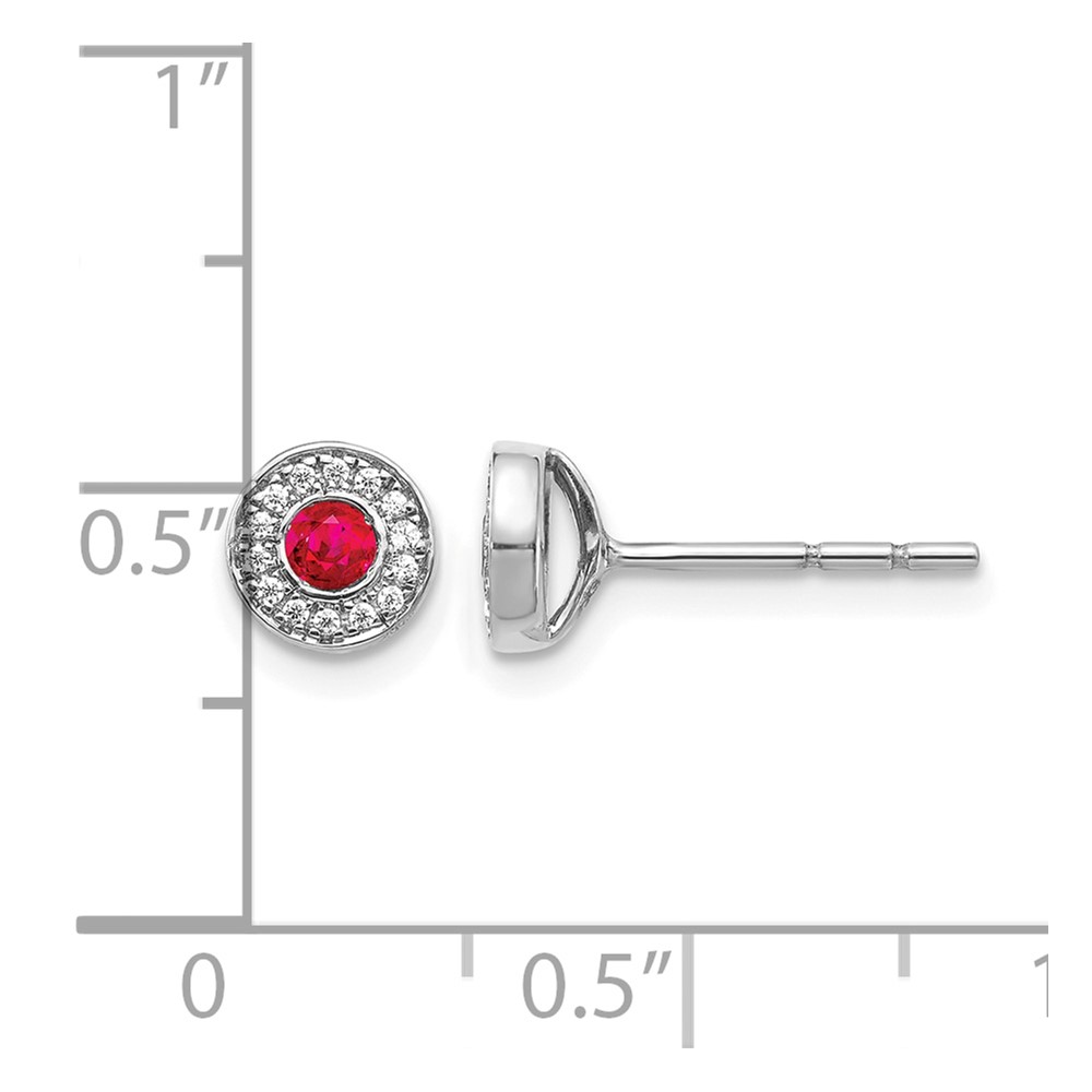 14k White Gold 2.8mm Round Ruby and Diamond Halo Post Earrings