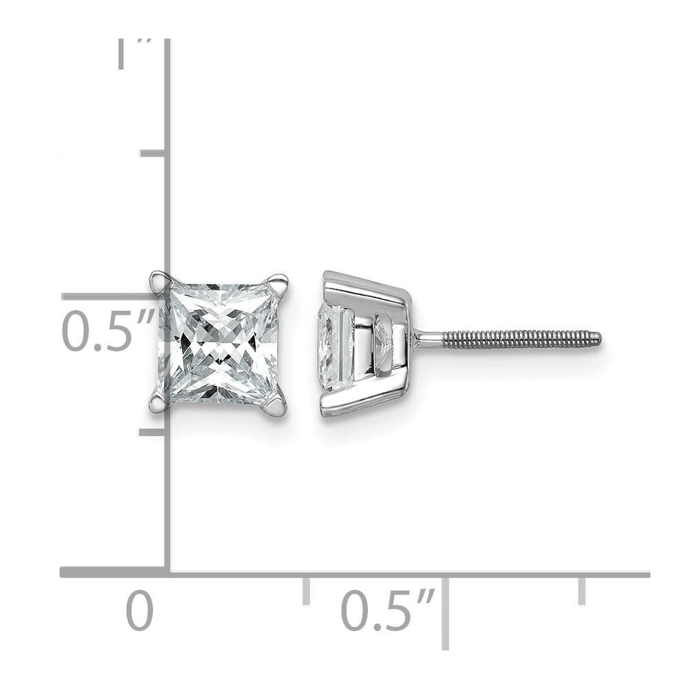 14k White Gold 2 carat Certified Lab Grown Diamond VS+ F+ Princess Complete Four Prong Screwback Stud Earrings