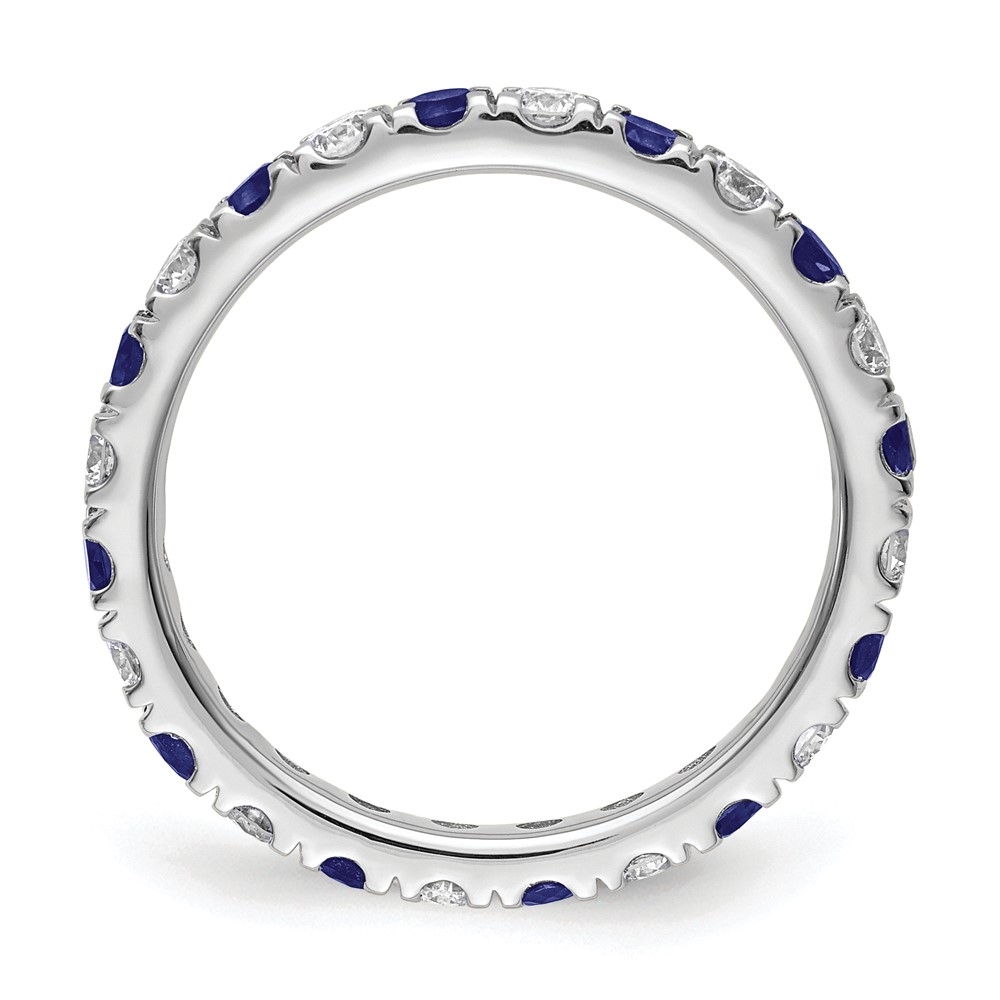 14k White Gold 3/4 carat Lab Grown Diamond VS/SI+ G+ and Lab Created Blue Sapphire Size 4.5 Eternity Band
