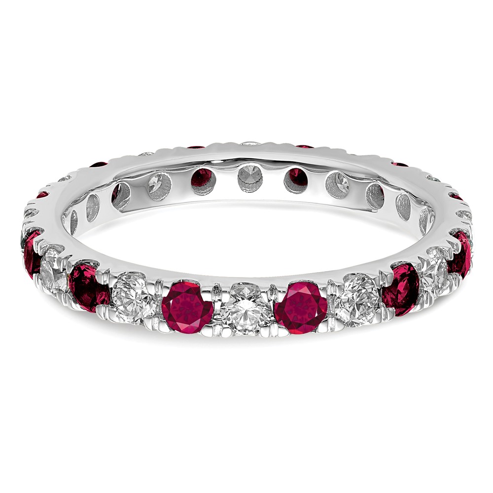 14k White Gold 3/4 carat Lab Grown Diamond VS/SI+ G+ and Lab Created Ruby Size 4 Eternity Band