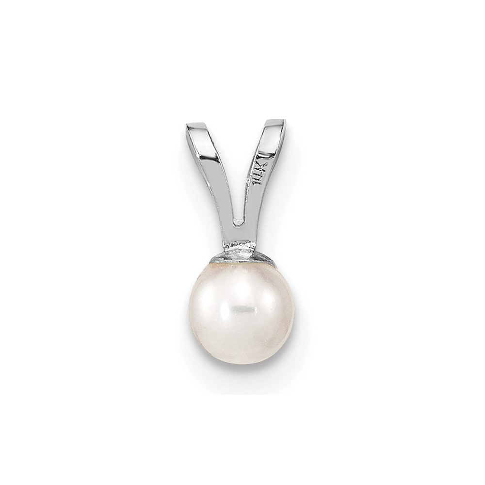 14k White Gold 3-4mm White Round Freshwater Cultured Pearl Pendant