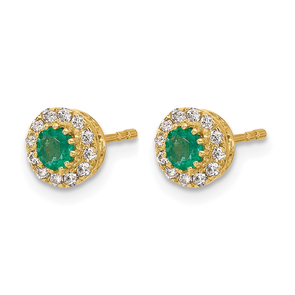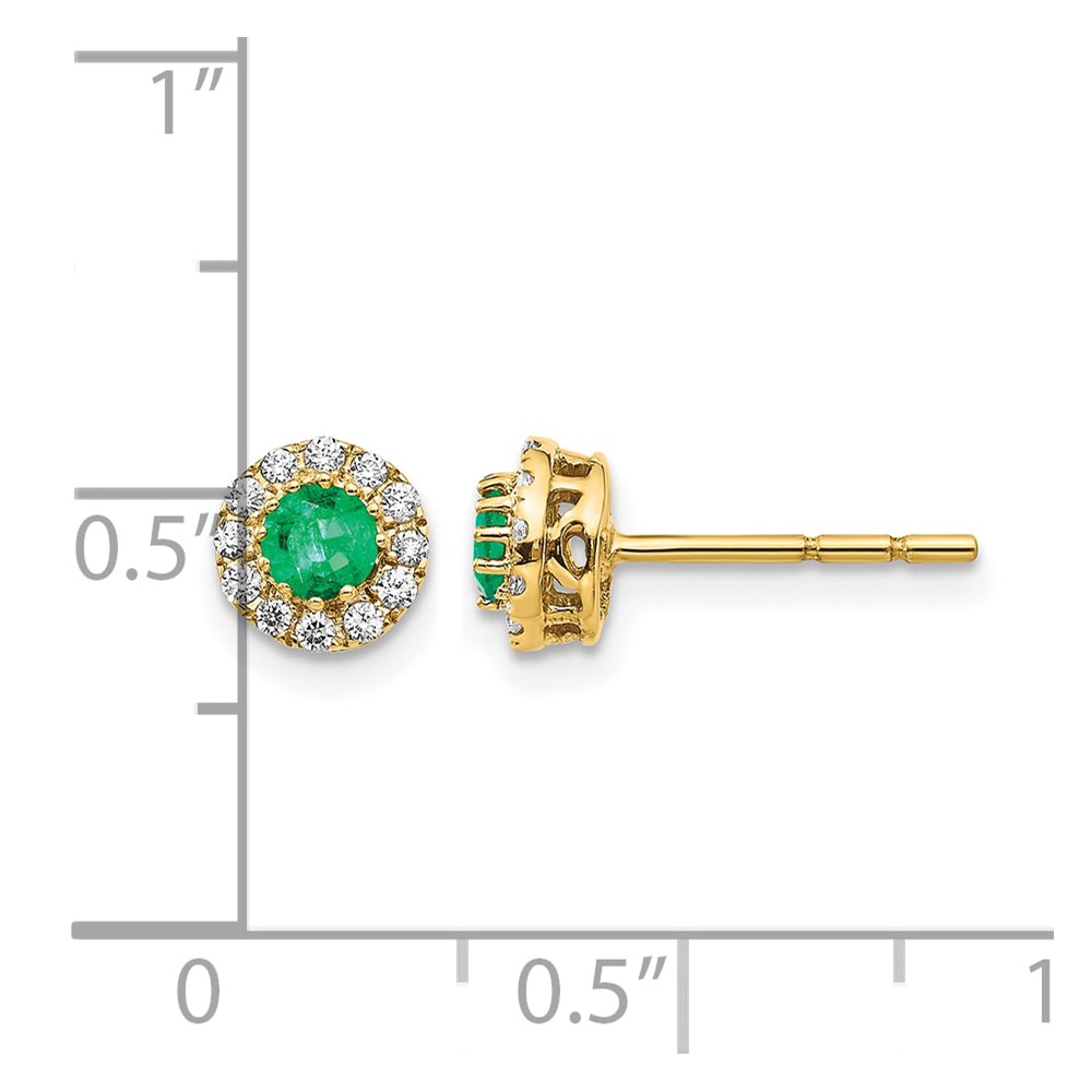 14k White Gold 3.5mm Round Blue Emerald and Diamond Halo Post Earrings