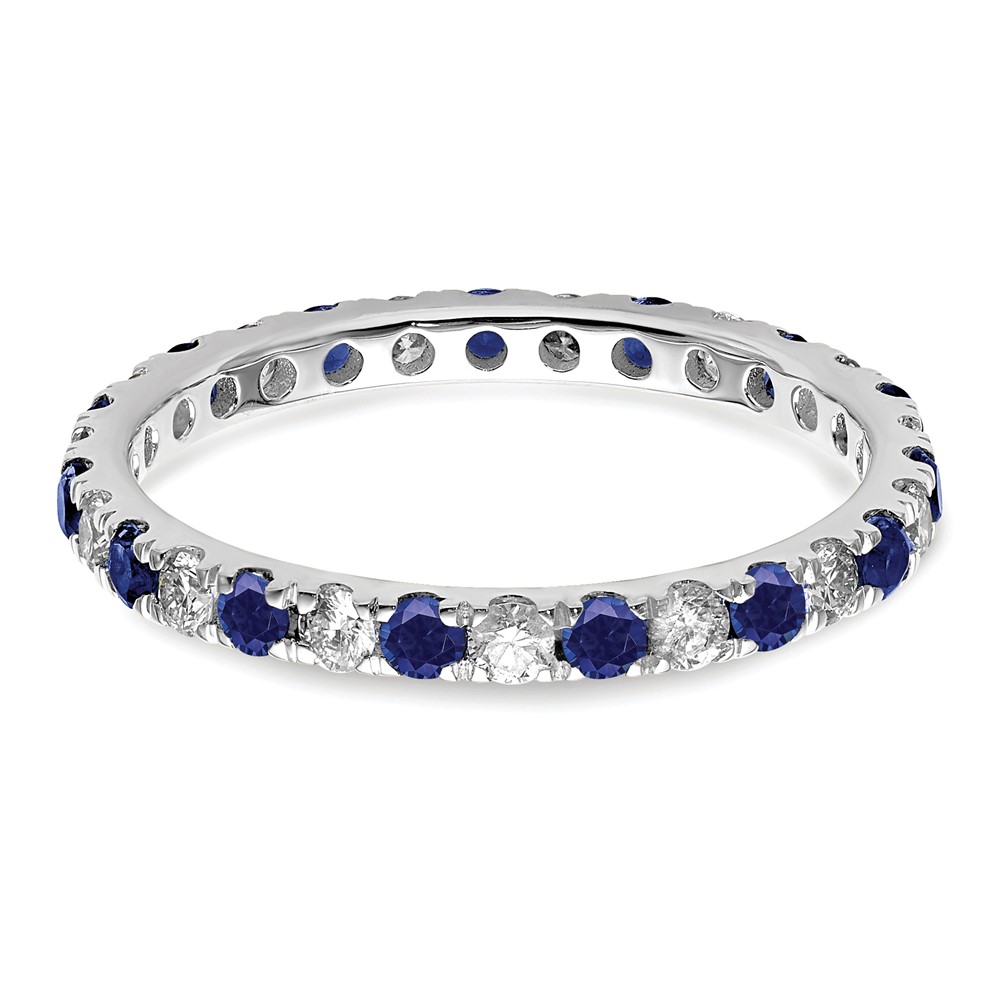 14k White Gold 3/8 carat Lab Grown Diamond VS/SI+ G+ and Lab Created Blue Sapphire Size 4.5 Eternity Band