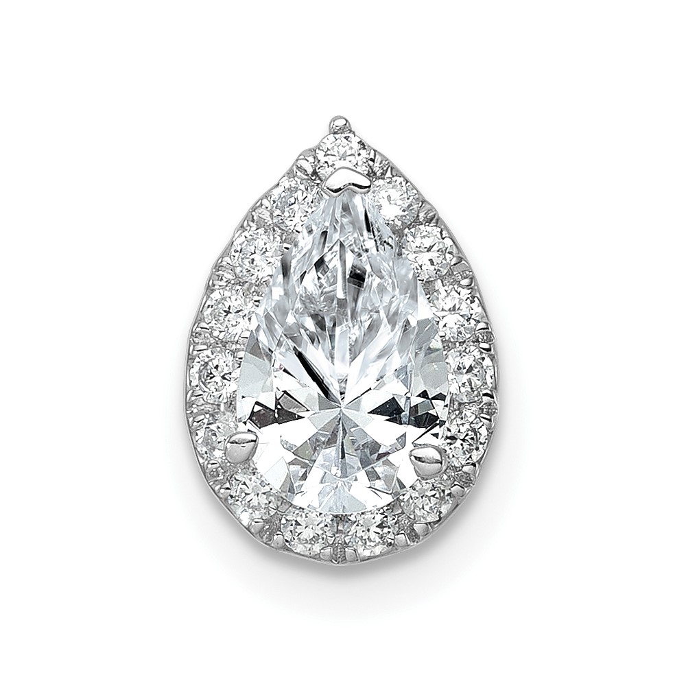 14k White Gold 3/8 carat Lab Grown Diamond VS/SI+ G+ Semi Mount Holds 10.7x7mm Pear Center Halo Chain Slide Pendant