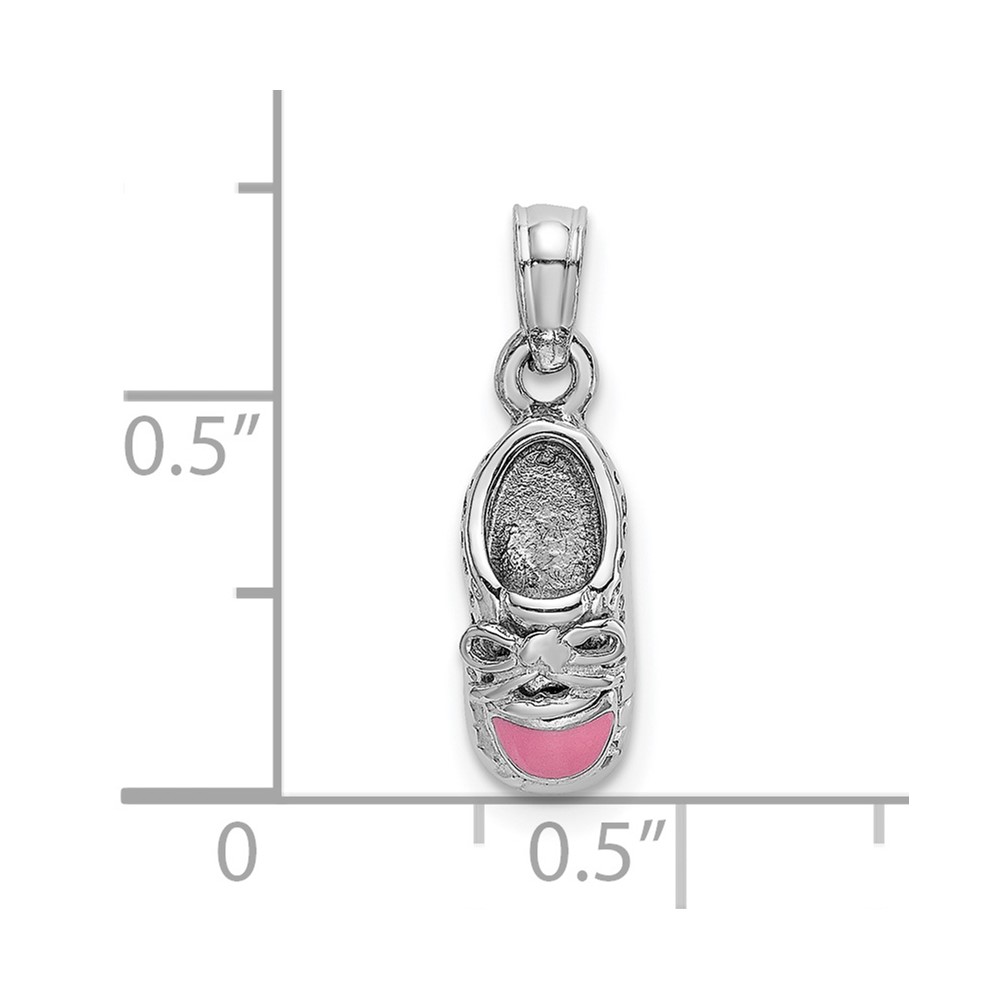 14K White Gold 3-D Pink Enamel Baby Shoe Charm