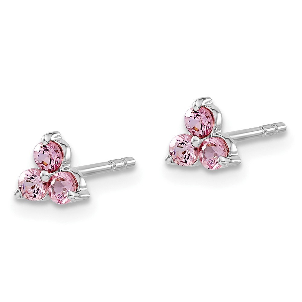 14k White Gold 3-stone Lab Created Pink Sapphire Triangle Post Earrings