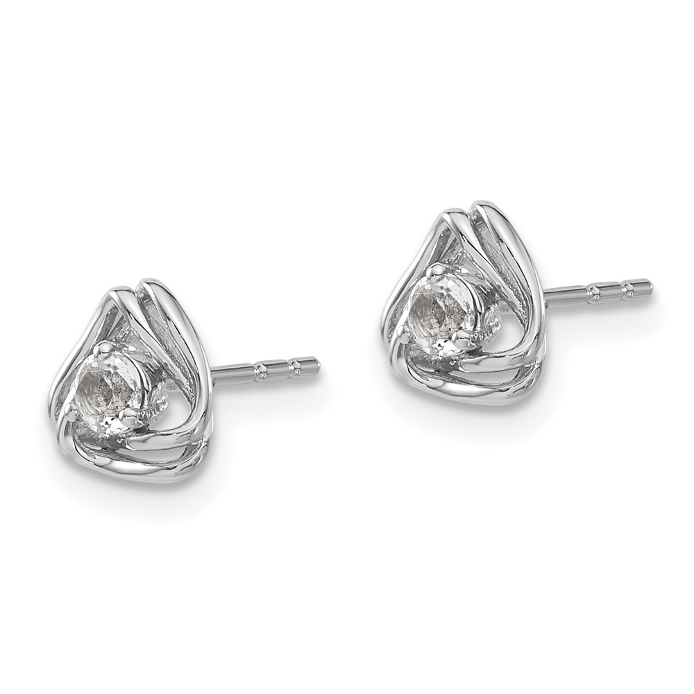 14k White Gold 3mm Round April/White Topaz Triangle Post Earrings