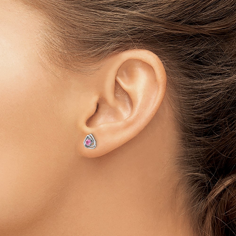 14k White Gold 3mm Round October/Pink Tourmaline Triangle Post Earrings