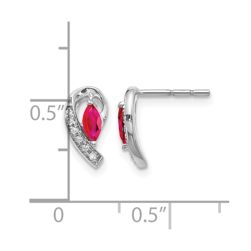 14k White Gold 5×2.5mm Marquise Ruby and Diamond Curved Post Earrings