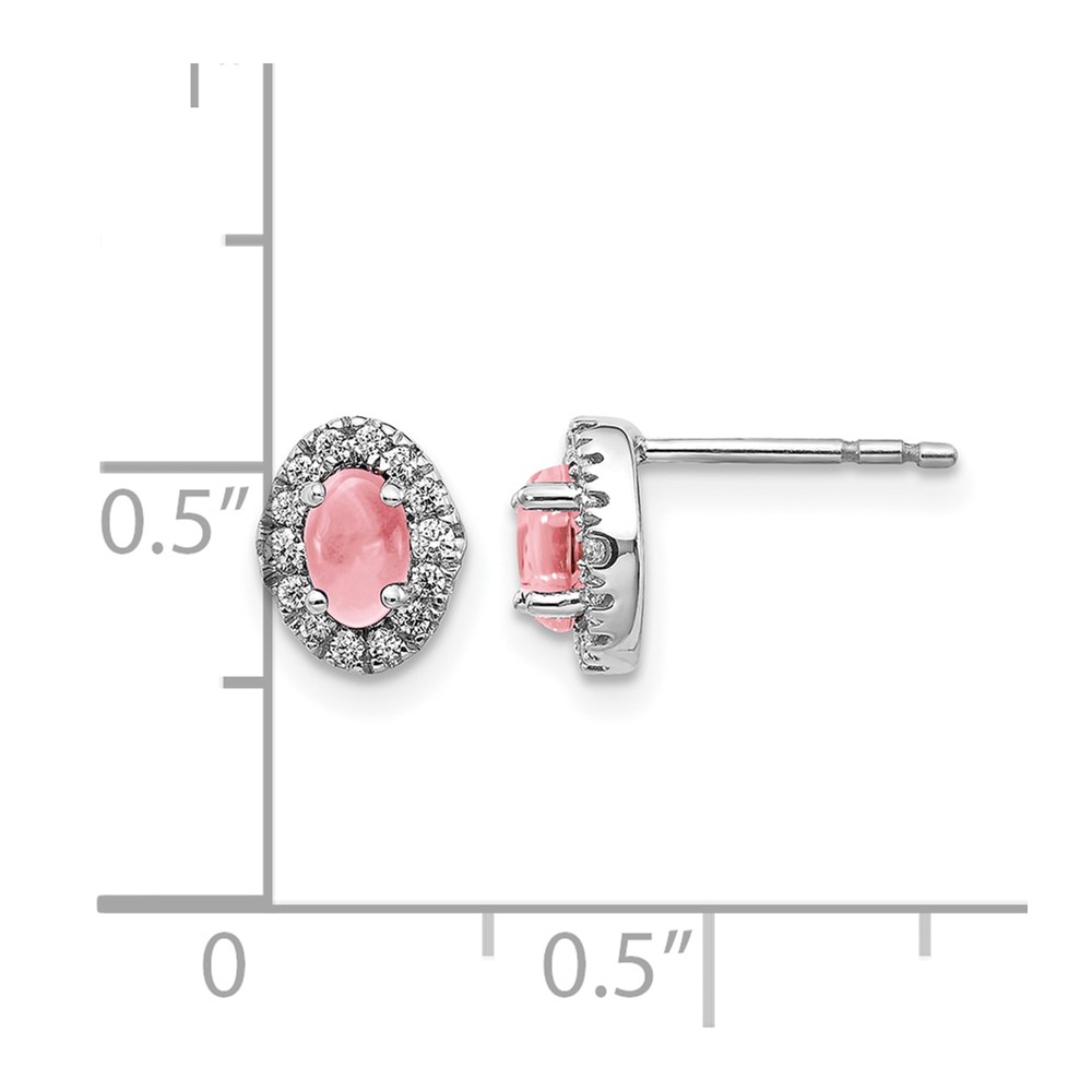 14k White Gold 5x3mm Oval Pink Tourmaline Cabochon and Diamond Halo Post Earrings