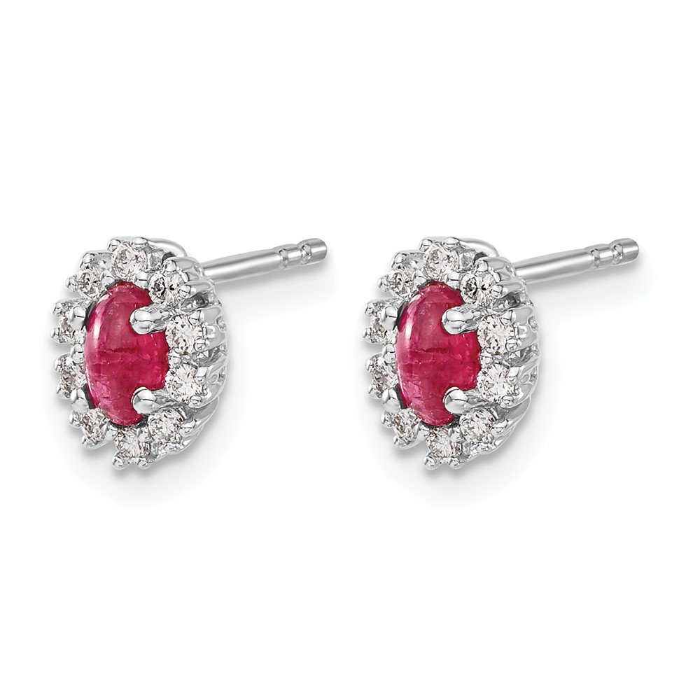 14k White Gold 5x3mm Oval Ruby and Diamond Halo Post Earrings