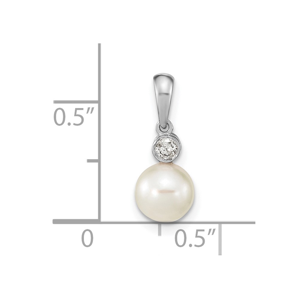 14k White Gold 6-7mm Round White Akoya Saltwater Cultured Pearl and .05 Carat Diamond Pendant