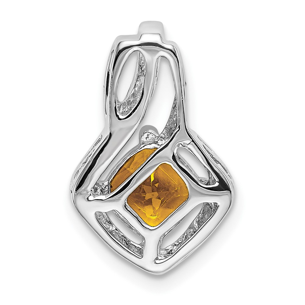 14k White Gold 6mm Cushion Citrine and Diamond Chain Slide