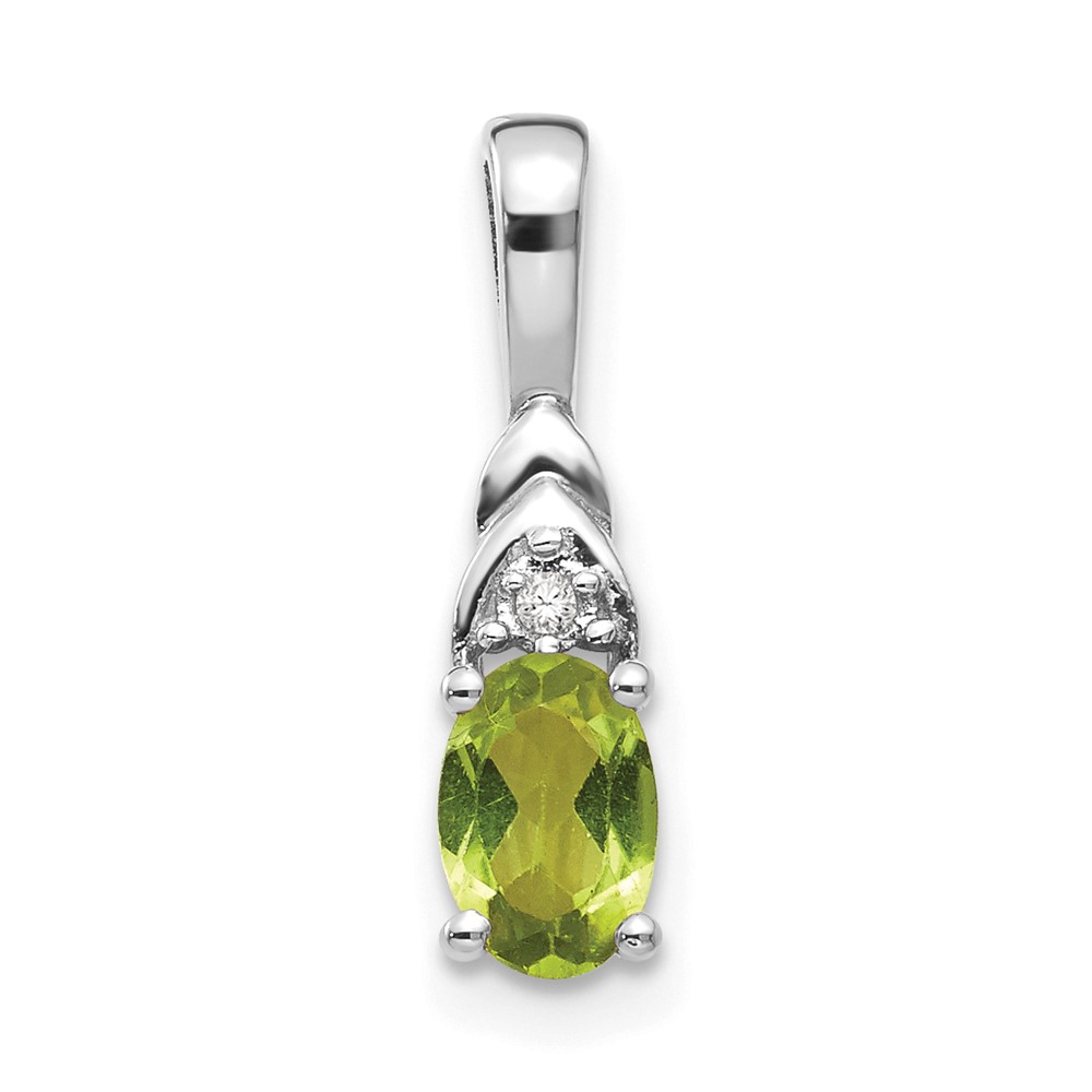 14k White Gold 6×4 Oval August/Peridot and Diamond Pendant