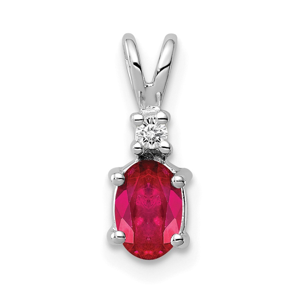 14k White Gold 6x4mm Oval Ruby and AA Diamond Pendant
