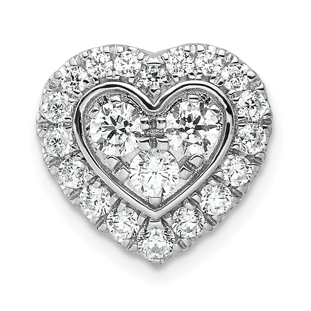 14k White Gold 7/8 carat Lab Grown Diamond VS/SI+ G+ Complete Halo Heart Chain Slide Pendant