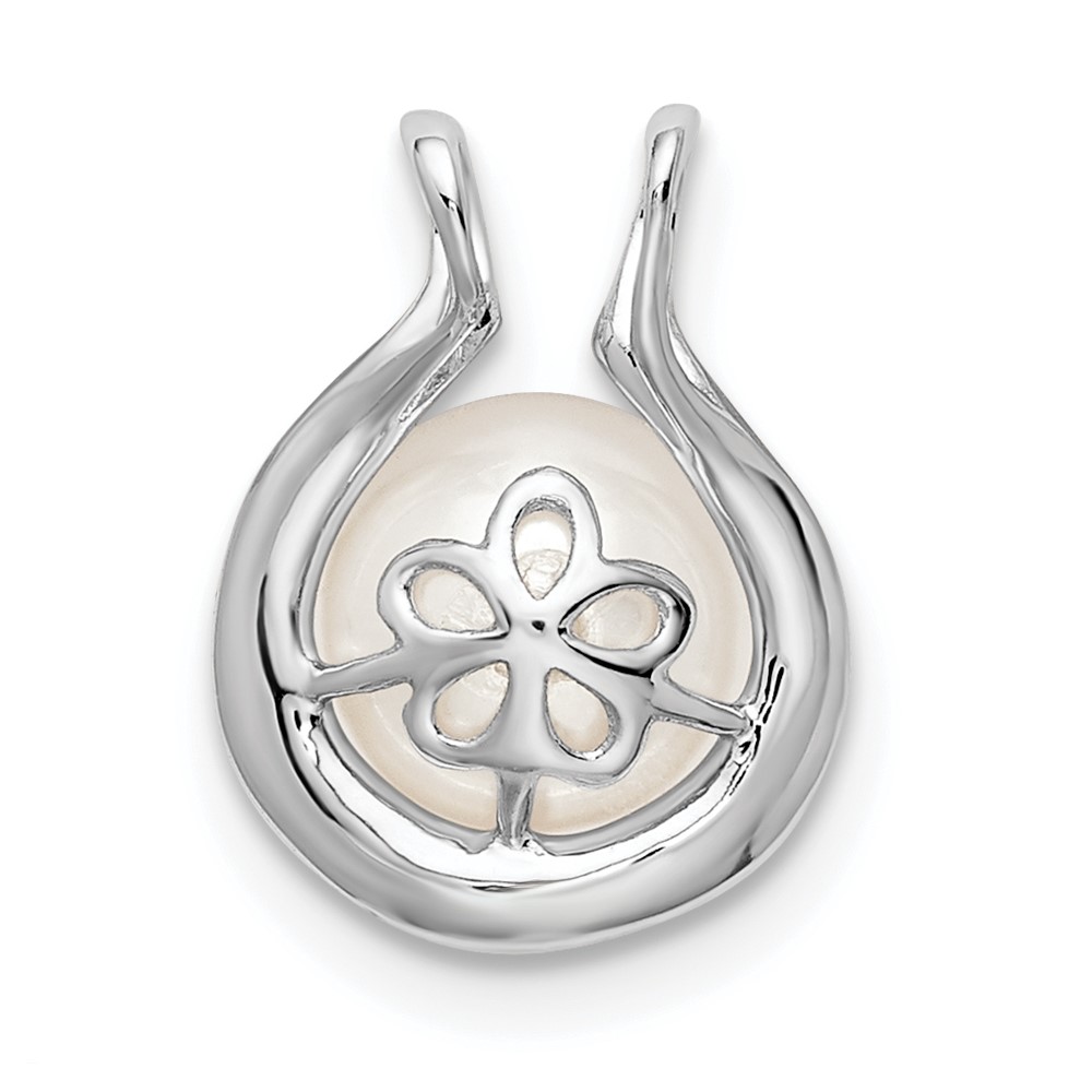 14k White Gold 7-8mm Round White Freshwater Cultured Pearl and Diamond Chain Slide