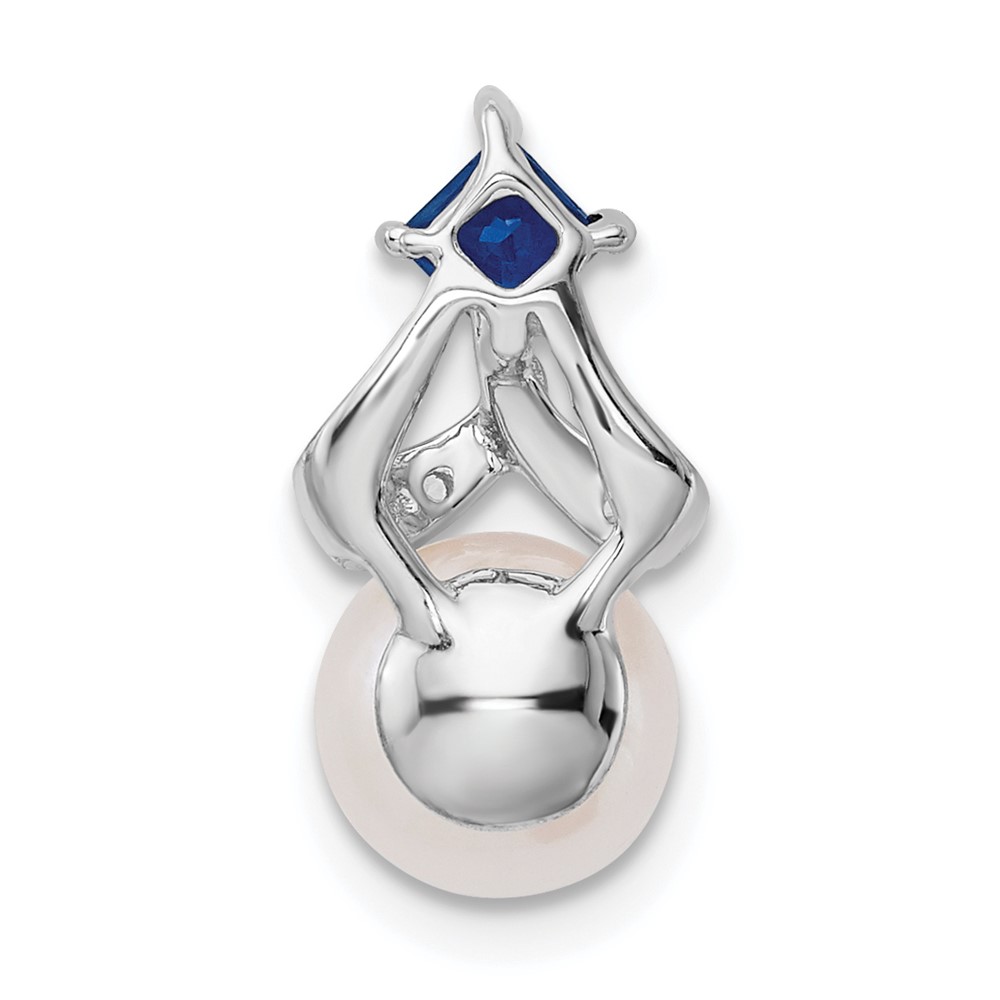 14k White Gold 7-8mm Round White Freshwater Cultured Pearl/Square Sapphire/Diamond Chain Slide
