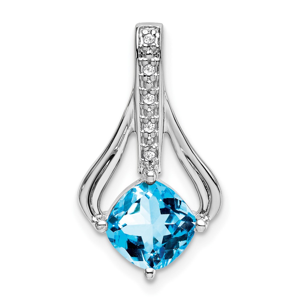 14k White Gold 7mm Cushion Blue Topaz and Diamond Pendant Fits up to 4mm Fancy Omega Only