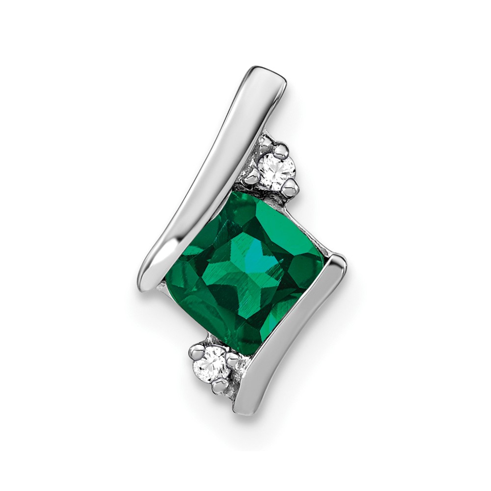 14k White Gold 7mm Cushion May/Lab Created Emerald and Diamond Chain Slide