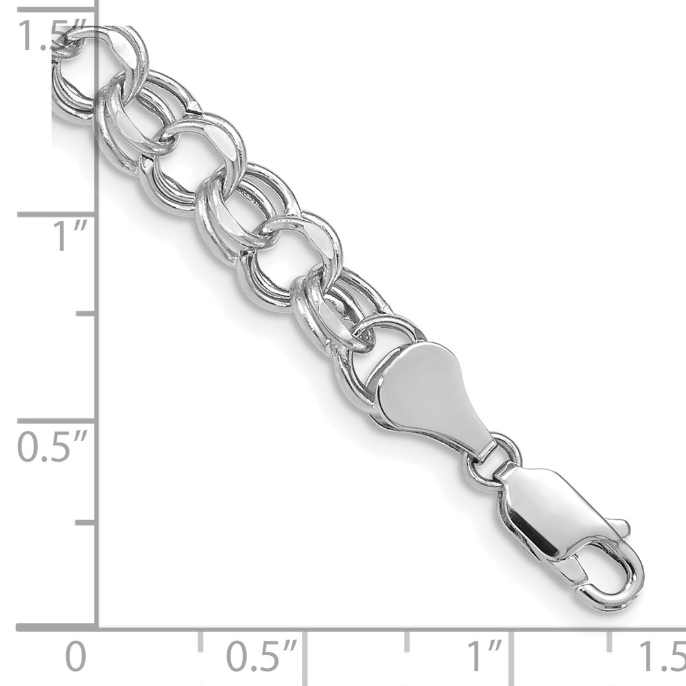 14k White Gold 7mm Hollow Diamond-cut Double Link Charm Bracelet